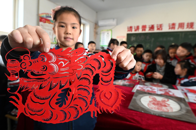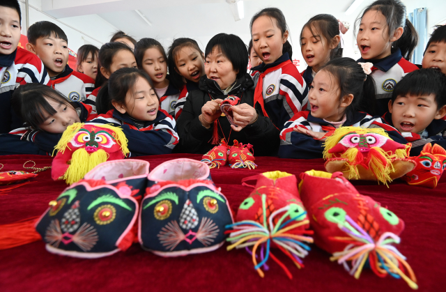 12月25日,河北省邯郸市邯山区开元小学开展“非遗进校园、文化迎新年”活动,邀请邯山区的非物质文化遗产传承人现场展示剪纸、虎头鞋制作技艺、土布织染技艺、绘制脸谱等,让同学们近距离感受传统文化,传承非遗技艺,喜迎新年的到来。